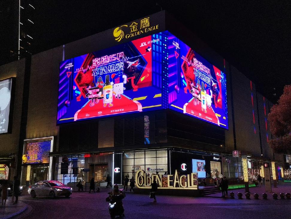 南京江寧區金鷹購物中心拐角屏裸眼3d廣告