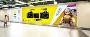 | 上海地鐵廣告-電子媒體--炫動畫墻 位于人民廣場換乘通道兩側,全天候高客流量 2塊PDP+墻貼、3塊PDP+墻貼及5塊PDP+墻貼,形式豐富多樣 屏幕高清巨大,畫面生動,支持動畫形式,極具震撼效果的電子長廊 |