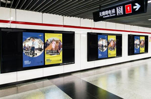 12封燈箱的規格是寬3米*高1.5米,12封燈箱套裝是地鐵廣告最常見的媒體形式之一,廣泛分布于站臺、站廳和地鐵通道內??梢?連、5連、甚至10連,因為她與廣告受眾的接觸時間長、接觸頻次高、可選點位多、預算匹配性強等優勢備受青睞。
