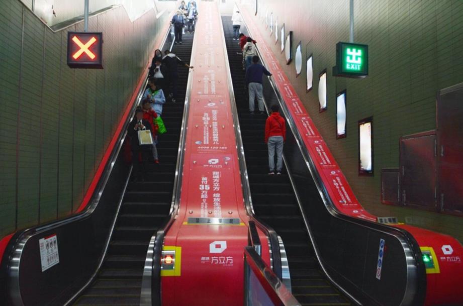 地鐵扶梯廣告 進出必經之地,地鐵的第一眼媒體; 密集連貫發布,廣告信息重復到達; 形式豐富多變,保持品牌的新鮮感。 梯牌廣告位于地鐵入口、出口處階梯兩側,廣告畫面連續,品牌反復沖擊,記憶深刻,細節閱讀,是最佳消費導向媒體??梢皇蕉鄻樱貜偷竭_;也可不同畫面,形成連環效果;還可以進行特型創意發布。地鐵人群規律性出行特征媒體受眾具穩定性,71%的地鐵受眾乘坐地鐵頻次高達6.9/周。乘坐地鐵人群中,主要出行目的是購物娛樂。 |