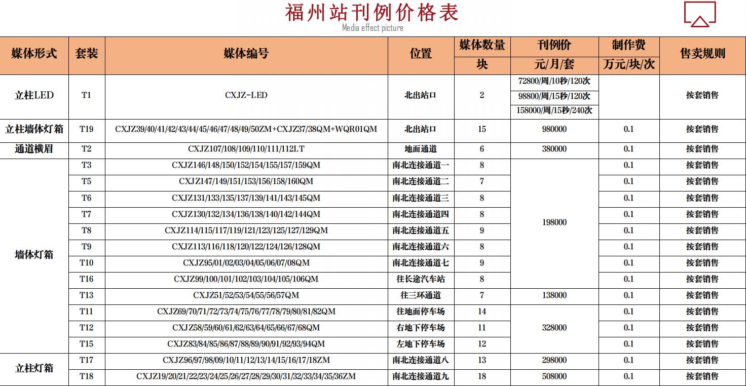 福州站刊例價格表