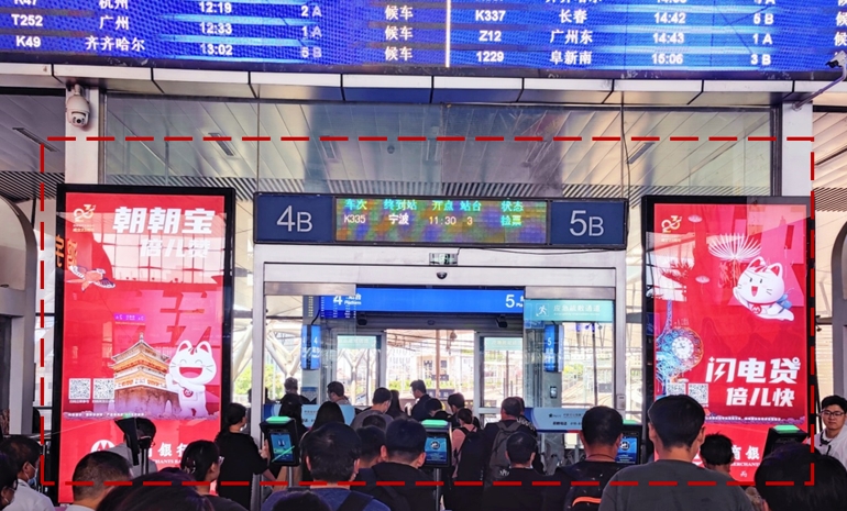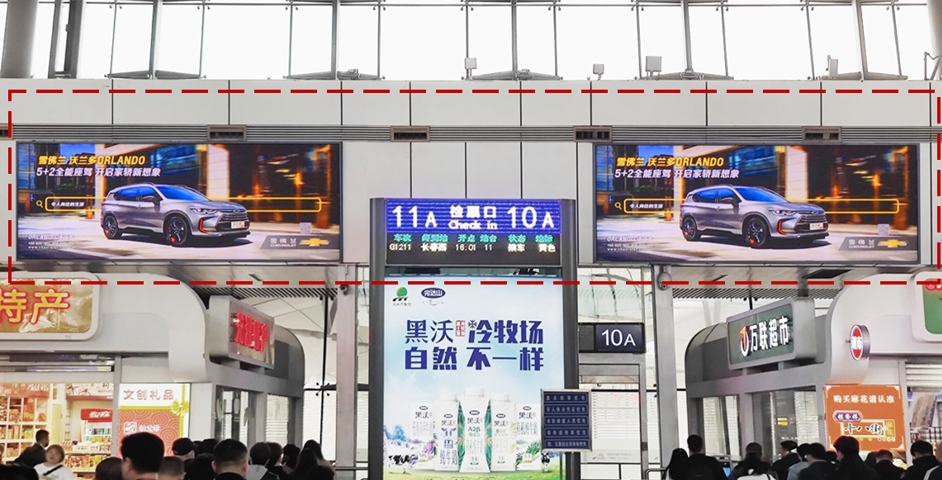 此媒體為候車大廳墻面燈箱,覆蓋所有進(jìn)站旅客;視野范圍最大的媒體畫面,具有明確的引導(dǎo)消費(fèi)意義; 觀看距離近、視覺沖擊力強(qiáng),將企業(yè)品牌和產(chǎn)品形象有效送達(dá)潛在目標(biāo)人群。