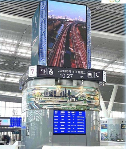 北京清河站led廣告-候車室-中央服務(wù)臺led四面屏廣告