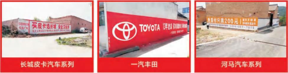 墻體廣告作為一種新興的大型戶外廣告形式,在農(nóng)村和中小城市旁, 墻體廣告隨處可見,直接面對(duì)您的消費(fèi)者進(jìn)行宣傳,其以出現(xiàn)頻率高、分布范圍廣、費(fèi)用低、持久性強(qiáng)、干擾度小等優(yōu)勢(shì),近年來已被國內(nèi)眾多知名企業(yè)選擇。