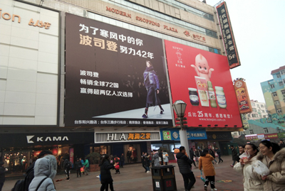 | 青島臺東三路步行街大牌 媒體形式:外打燈墻體大牌 媒體位置:青島臺東三路步行街當代商城墻體南側(中間位) 區域屬性:青島臺東商圈、步行街 媒體規格: 14.1m(w) X14.7m(h) =207㎡ 交通流量:36萬人次/天 亮燈時間:4小時/天(3個月以內發布無照明) 媒體刊例:15萬/月 媒體簡介:此媒體位于步行街中心路口,是進入步行街的必經之路,視覺效果絕佳。臺東步行街現為“全國著名商業街”、”國家AAA景區”,是青島市人流量最大的地方,最為繁華的商業中心,最高峰日客流量達60萬人次,沃爾瑪、利群、萬達、萬千百貨、當代商城、國美、蘇寧、千川百貨、臺東服裝城、電子產品城、多個手機賣場等大型商場分布于此,是人們購物、休閑的良好場所,也是外地來青旅游者駐足之地。 |