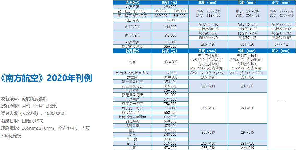 每天覆蓋25000余名南航明珠金卡/銀卡會(huì)員、南方航空頭等艙、商務(wù)艙旅客。