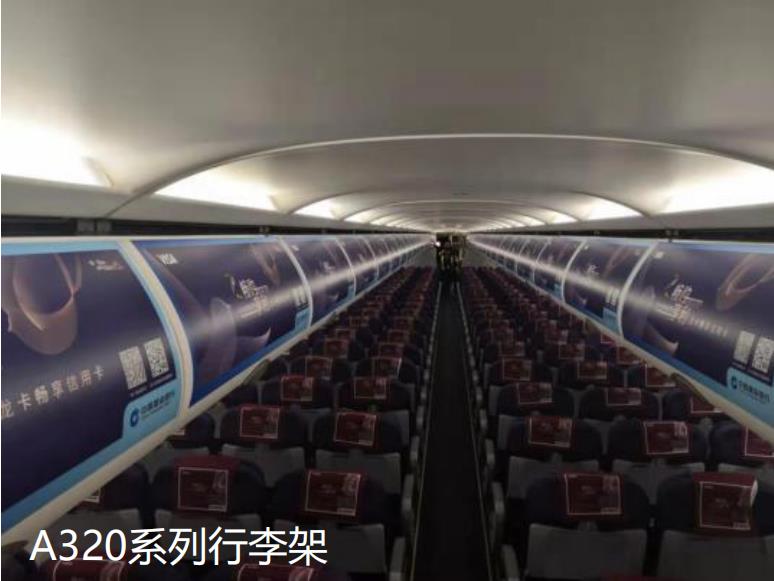 行李架廣告是指位于旅客上方的存放手提行李架外觀,將廣告客戶的LOGO、形象圖案和(或)廣告語張貼在吉祥航空機內的行李架(局部鋪)上,行李架廣告是旅客進入機艙首先接觸到的廣告內容。