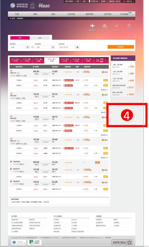 位置:航班查詢結果頁右側