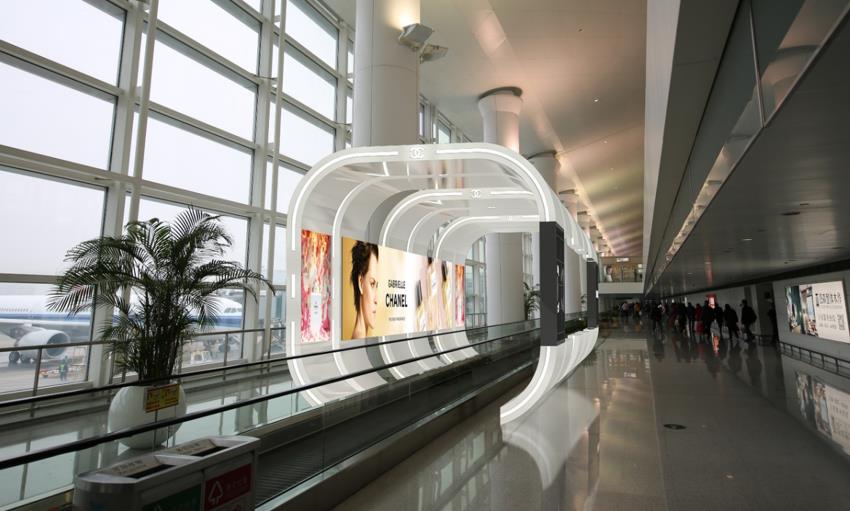 杭州機(jī)場(chǎng)航站樓貼膜廣告-T2航站樓廊橋內(nèi)貼膜廣告