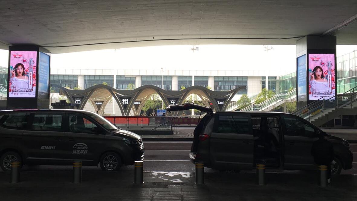 武漢天河機(jī)場(chǎng)廣告-武漢機(jī)場(chǎng)T3航站樓到達(dá)出租車等候區(qū)led大屏廣告(雙屏)