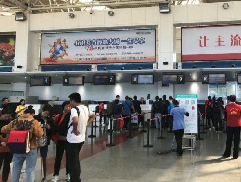 蘭州機場出發大廳安檢正上方燈箱廣告
