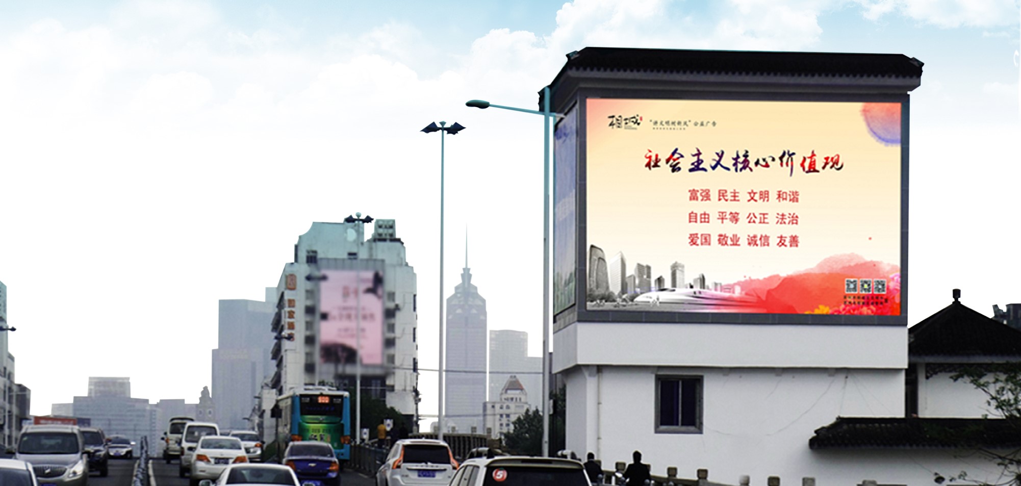 全新更新的高清戶外大屏,加之該廣告位于干將路相門橋段,進園區入口處,是蘇州市最繁忙的交通干道之一。