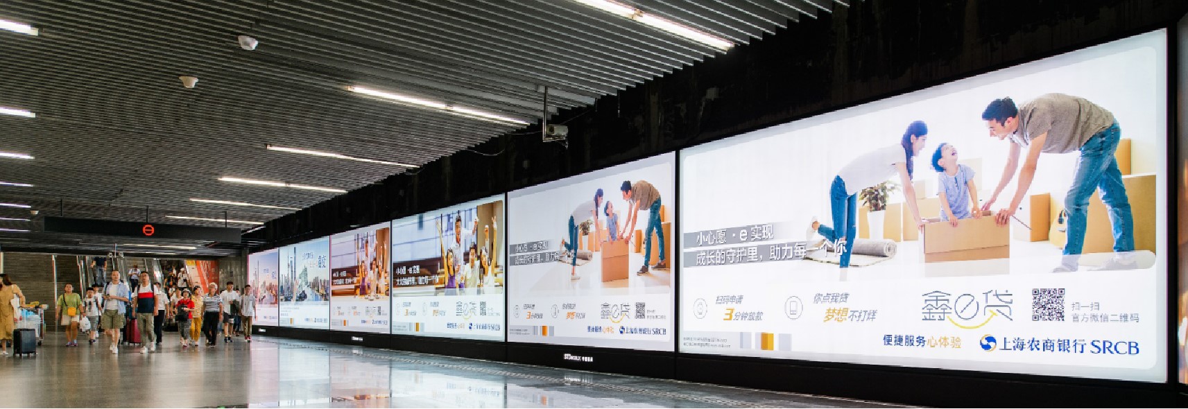 由 電子屏 與 超級動感燈箱,相互交錯組成的電子媒體通道,大面積的靜態(tài)海報與高精度的動態(tài)畫面不斷沖擊乘客視覺;頂部天花板與通道內(nèi)柱體的鏡面環(huán)境設(shè)計從空間上帶來沉浸式的3D體驗;每個區(qū)域的定向音響環(huán)繞聲系統(tǒng) 從聽覺上刺激乘客的感官體驗 ,日均客流達(dá)55萬*人次 支持動畫、TVC、電子海報等,可制作各種大型創(chuàng)意效果