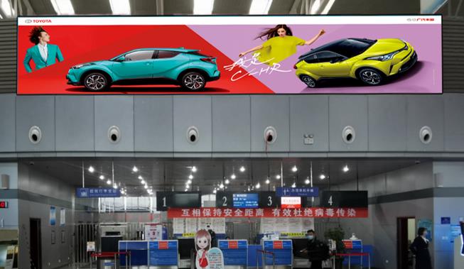張掖甘州機場混合大廳辦票島行李轉盤上方led廣告,萬事成傳媒