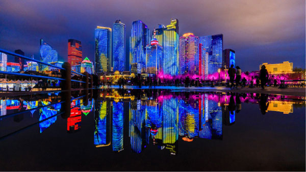 超級場景營銷舞臺 中國頂尖團(tuán)隊呈現(xiàn)上合峰會主題燈光show 以城市為舞臺,以天地為畫布,量身設(shè)計,巨資打造 展現(xiàn)中國的氣度和實力,成為青島城市新名片