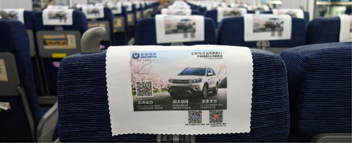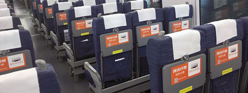 位于所有高鐵車廂內(nèi)行李架下方,對稱發(fā)布,氣勢磅礴,視覺沖擊力強,無論坐、立、行,都能有絕佳的視覺效果,利于品牌整體性展示。