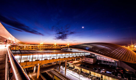 北京首都國際機場,距離市中心25公里,為4F級民用機場,是中國三大門戶復合樞紐之一、環(huán)渤海地區(qū)國際航空貨運樞紐群成員、世界超大型機場。
