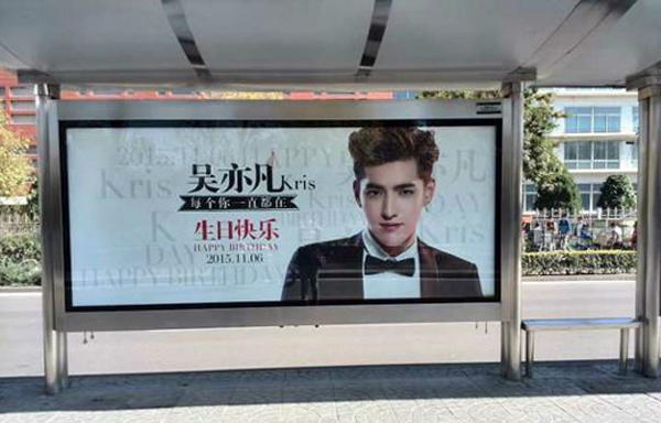 吳亦凡生日,粉絲群集力在北京的廣順南大街、雙井橋西、清華附中、清中關村北大街以及上海地區同濟大學、上海大學、松江大學城、浦東大道等站點的燈箱廣告牌和地鐵看臺廣告牌投放生日廣告。
