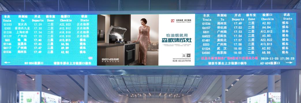 長沙南站廣告,長沙南站led屏廣告,高鐵站廣告投放,萬事成傳媒
