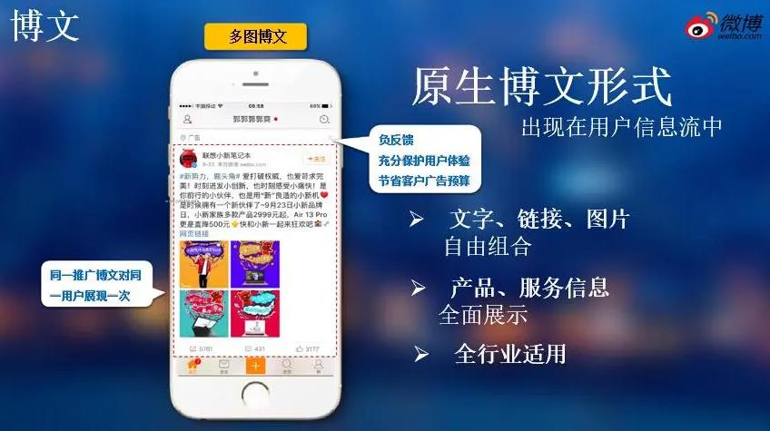 開通微博的后臺管理廣告投推廣帳戶,也是直接開啟微博粉絲通,這樣就可以將廣告以原生態(tài)視頻的推送到微博客戶微博信息流廣告頁面上,并利用大數(shù)據(jù)技術(shù),直接把廣告推送到對產(chǎn)品質(zhì)量有興趣的客戶群體中。